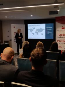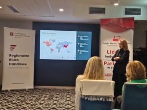 Podczas spotkania przedstawiono programy „Polskie Mosty Technologiczne” oraz „Umiędzynarodowienie MŚP – BRAND HUB”, które pomagają firmom przygotować strategię wejścia na rynki zagraniczne i sfinansować działania pro-eksportowe. Dzięki temu uczestnicy poznali możliwości wsparcia w zakresie analiz rynkowych, działań promocyjnych oraz budowania rozpoznawalności swojej marki poza Polską.
