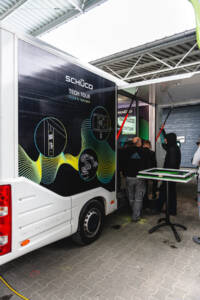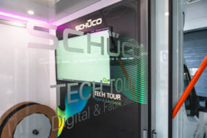 Schüco Tech Tour Truck jest platformą wspomagającą szkolenia i prezentacje rozwiązań z zakresu wydajnej produkcji i cyfryzacji procesów produkcyjnych, dzięki której eksperci Schüco mogą docierać niemal na hale produkcyjne.