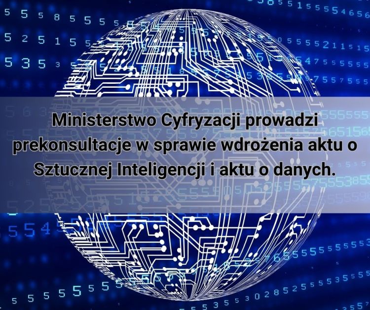 Ministerstwo Cyfryzacji prowadzi prekonsultacje w sprawie wdrożenia aktu o Sztucznej Inteligencji i aktu o danych.