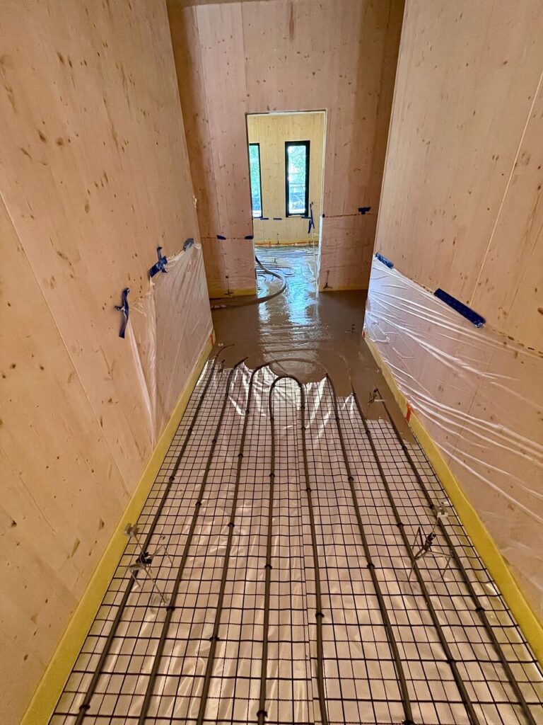 Holcim Polska, jako zaangażowany partner projektu, dostarcza zaawansowane, niskoemisyjne rozwiązania budowlane nowej generacji, które łączą najwyższą jakość technologiczną z troską o zdrowie, komfort i środowisko. Pierwszym etapem realizacji było wykonanie płyty fundamentowej z wykorzystaniem Agilia FIBRO – nowoczesnego betonu zbrojonego włóknami. Dzięki jego unikalnej recepturze możliwe było zredukowanie zużycia stali nawet o 80% w porównaniu do tradycyjnych rozwiązań, przy jednoczesnym zachowaniu pełnej wytrzymałości konstrukcyjnej. W zakresie izolacji termicznej zastosowano Airium – innowacyjną, mineralną pianę izolacyjną, która skutecznie chroni przed utratą ciepła, jest ognioodporna, w pełni recyklingowalna oraz bezpieczna dla zdrowia użytkowników. Kolejnym krokiem było przygotowanie posadzek, które 12 czerwca wykonano przy użyciu Agilia Sols A – płynnego jastrychu anhydrytowego nowej generacji. Ten materiał nie wymaga dodatkowego zbrojenia, dzięki czemu konstrukcja jest lżejsza, szybsza w wykonaniu i bardziej zrównoważona pod względem emisji CO₂.