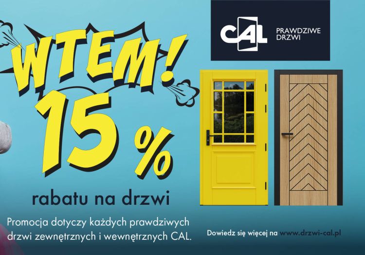 15 maja ruszyła nowa kampania promocyjna producenta drzwi drewnianych i hybrydowych – marki CAL prawdziwe drzwi. Promocja „WTEM!” to wyjątkowy rabat na prawdziwe drzwi – w maju drzwi zewnętrzne i wewnętrzne CAL aż 15% taniej. Co jeszcze jest w niej wyjątkowego?