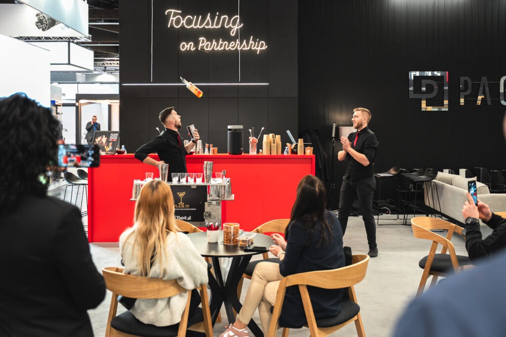 Stoisko PAGEN stało się przestrzenią intensywnego dialogu z partnerami i klientami z różnych rynków, gdzie konkretne rozmowy biznesowe łączyły się z wymianą doświadczeń i konsultacjami projektowymi. Bezpośredni kontakt po raz kolejny potwierdził, że targi pozostają jednym z najskuteczniejszych narzędzi budowania trwałych relacji – podejście to firma konsekwentnie rozwija, czego przykładem były również działania podczas MADE Expo 2025. Jednocześnie PAGEN zadbał o to, by przestrzeń stoiska nie była wyłącznie miejscem rozmów, ale także doświadczeniem samym w sobie – odwiedzający mogli liczyć na wsparcie ekspertów i inspirujące dyskusje, a w chwilach wytchnienia uwagę przyciągały dynamiczne pokazy barmańskie zespołu Flair It, które dodawały energii i budowały wyjątkową atmosferę przez wszystkie dni targowe.