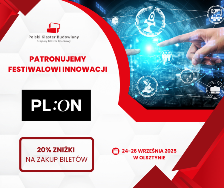 Polski Klaster Budowlany został partnerem Festiwalu PL:ON – Włączamy Polskę, który odbędzie się dniach 24-26 września 2025 w różnych lokalizacjach Olsztyna – m.in. w Amfiteatrze przy Zamku, na Starym Mieście, a także na Plaży Miejskiej. To wydarzenie, które ma na celu wsparcie Polski w staniu się jednym z liderów innowacji w Europie. Jest to forum, na którym kształtują się kierunki rozwoju, które mogą przybliżyć Polskę do pozycji czołowych państw na kontynencie.