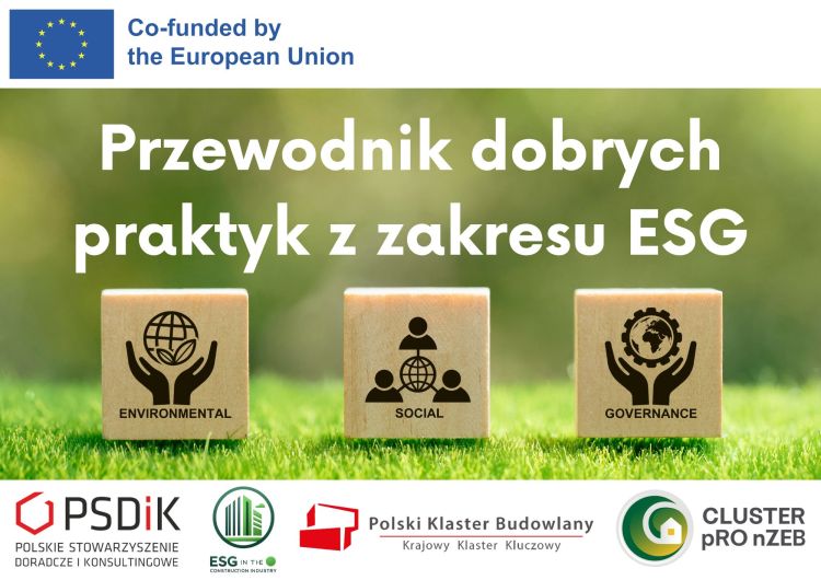 Zapraszamy Państwa do zapoznania się z Przewodnikiem dobrych praktyk z zakresu ESG. Niniejsza publikacja powstała w wyniku realizacji projektu „Kształcenie i szkolenie dorosłych z zakresu wdrażania ESG mające na celu podniesienie kompetencji pracowników branży budowlanej” o numerze 2023-1-PL01-KA210-VET-000153723, współfinansowanego ze środków Unii Europejskiej w ramach programu Erasmus+, akcja kluczowa 2: Partnerstwa na małą skalę w dziedzinie kształcenia i szkolenia zawodowego. Projekt był realizowany przez Polskie Stowarzyszenie Doradcze i Konsultingowe – operatora Polskiego Klastra Budowlanego Krajowego Klastra Kluczowego (Lidera) oraz Asociatia Cluster Pentru Promovarea Cladirilor Cu Consum De Energie Aproape Egal Cu Zero PRO NZEB z Rumunii (Partnera).