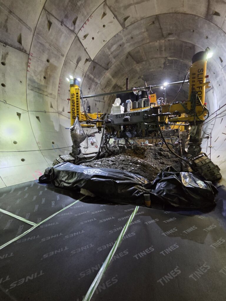W konstrukcjach bezpodsypkowych maty zabudowywane są zazwyczaj pod konstrukcją podbudowy w postaci betonowej płyty torowej. Jednym z przykładów takiej realizacji jest trwająca budowa tunelu średnicowego w Łodzi, gdzie maty TINES® Rubbermat ułożono na spągu i na ścianach obudowy tunelu. Rozwiązanie to pozwoli na ograniczenie przenoszenia wibracji z toru kolejowego na elementy konstrukcji tunelu oraz na budynki w bezpośrednim otoczeniu budowanej trasy kolejowej. Prace prowadzono tu z zastosowaniem nowoczesnej technologii betonowania ślizgowego, co umożliwia uzyskanie wysokiej precyzji wykonania i optymalnego przylegania mat do ich podłoża.