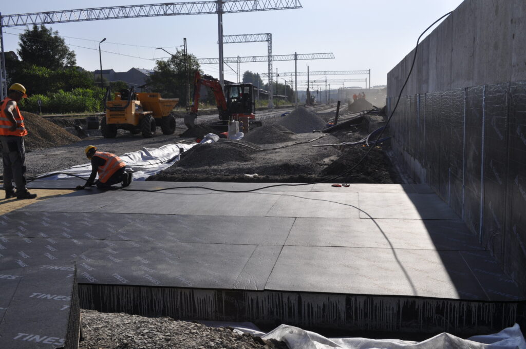 W ramach przebudowy stacji Olkusz maty TINES® Rubbermat zostały zastosowane bezpośrednio na stropie tunelowego przejścia pod torami. Celem było ograniczenie wibracji od ruchu kolejowego, które mogłyby oddziaływać na konstrukcję tego obiektu. Dzięki odpowiedniemu doborowi parametrów materiałowych, udało się znaleźć rozwiązanie, ograniczające przenoszenie oddziaływań dynamicznych od ruchu pociągów, zwiększając trwałość konstrukcji tunelu oraz poprawiając komfort użytkowników budynków położonych nad nim. Projekt ten stanowi przykład punktowego zastosowania rozwiązań wibroizolacyjnych w strefie oddziaływań na obiekty budowlane.