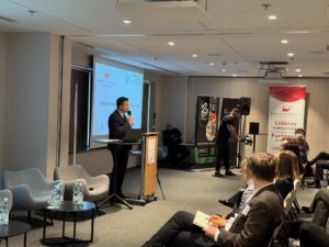 Popołudnie należało do Anastasiyi Yurchyshyny z ECTP – European Construction and sustainable built environment Technology PlatformKatarzyny Nowak i Katarzyny Woźniak z Sieci Badawczej Łukasiewicz, które pokazały, jak Horyzont Europa i New European Bauhaus otwierają drogę do realizacji międzynarodowych projektów.