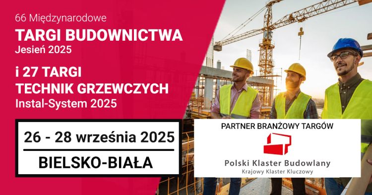 Polski Klaster Budowlany zaprasza na 66. Międzynarodowe Targi Budownictwa JESIEŃ 2025, które odbędą się w Bielsku-Białej w dniach 26-28 września 2025 roku. Tematem przewodnim tegorocznej edycji jest “Buduj Nowocześnie – Najnowsze techniki, energie odnawialne, zrównoważony rozwój”, ponieważ przyszłość budownictwa zależy od ekologicznego myślenia i nowych technologii.