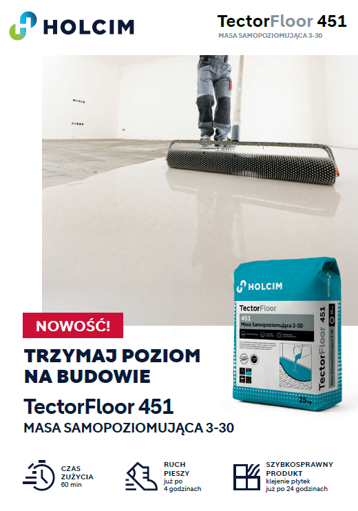– Przy projektowaniu TectorFloor 451 kluczowe było dla nas jego rzeczywiste funkcjonowanie na budowie. Zależało nam na zapewnieniu wykonawcom odpowiedniego czasu pracy, komfortu aplikacji na większych powierzchniach oraz możliwości sprawnego przechodzenia do kolejnych etapów realizacji. TectorFloor 451 powstał jako odpowiedź na te potrzeby – podkreśla Anna Majorek, Dyrektor Marketingu Chemii Budowlanej i Materiałów Izolacyjnych w Holcim Polska.