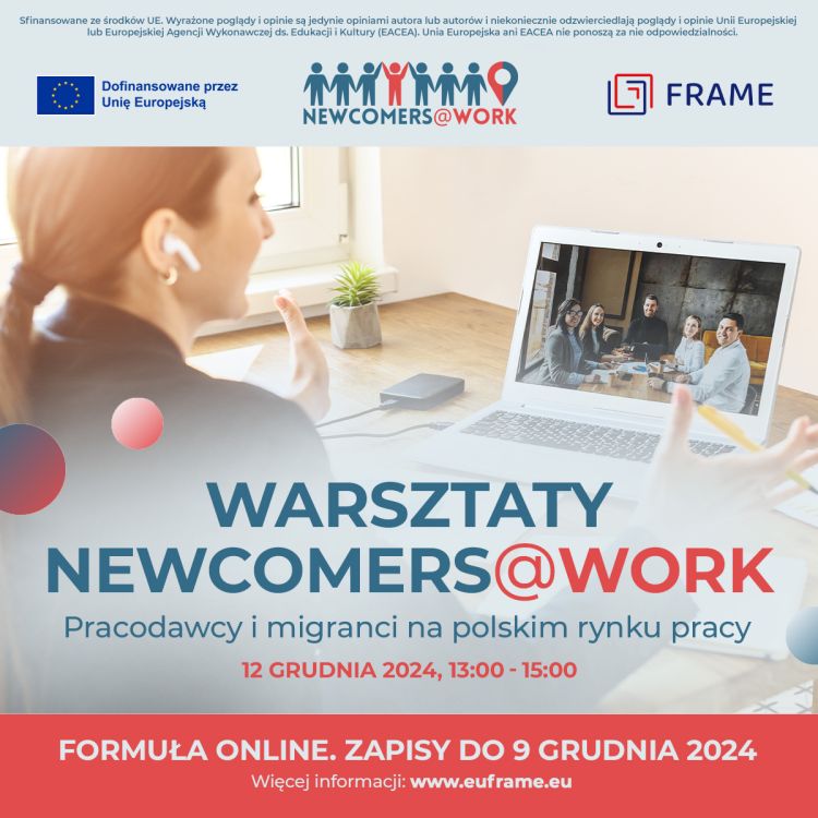 w imieniu Fundacji Rozwoju Aktywności Międzynarodowej i Edukacyjnej FRAME oraz partnerów międzynarodowego projektu Newcomers@work serdecznie zapraszamy do udziału w serii bezpłatnych warsztatów mających na celu wsparcie polskich pracodawców we współpracy z młodymi osobami pochodzenia migracyjnego, które aktualnie nie pracują i nie uczą się, a chciałyby odnaleźć się na rynku pracy.